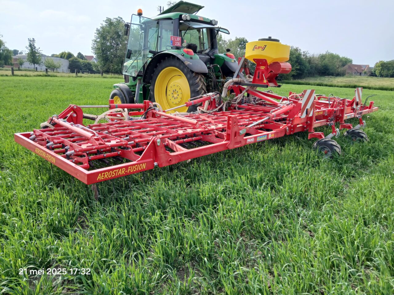 Teler Peter Geerse uit het Zeeuwse Biggekerke is een van de telers die vorig jaar al experimenteel klaver heeft ondergezaaid in granen. Met een zaaimachine in de front en een wiedeg achter om het zaad onder te werken, maakt hij dit seizoen serieus